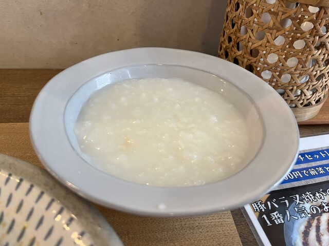 麺を少なめ(−100円)にして、残ったスープに追い飯ならぬ、追い粥を追加して(+200円)にして食べました。麺を少なめにしたので量的に心配でしたが、追い粥をして丁度良かったです。