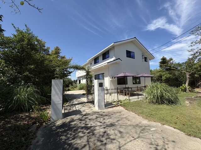 緑樹と青空、それに白い建物がとても映えていて素敵なお店でした。