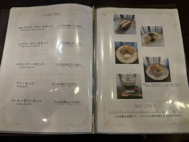 ロイヤルブレンド1989というコーヒーに、ホシヤマチーズケーキをセットにして注文。