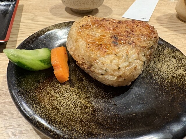 焼きおにぎりは堅めで出汁醤油の味付けに感じました。