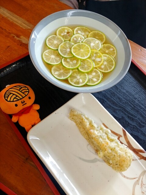 今回のオーダーは『あぶっていいとも!(冷)』と『塩麹鶏天』、連れは『すだちひやひや』と『ちくわ天』をチョイス。