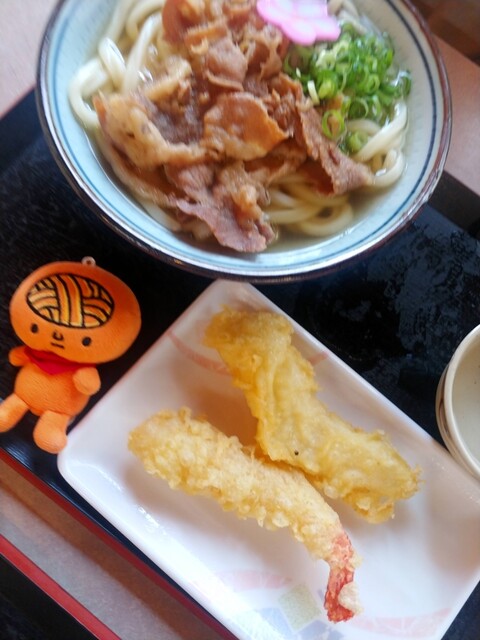 肉うどん(小)、イカ天、エビ天