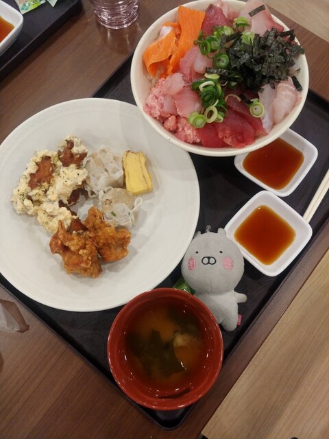 平日限定、午前11時~午後1時半までの間であれば、ご飯、海鮮丼の具、味噌汁、カレー、だし巻き玉子や揚げ物などのサイドメニューも食べ放題、おかわりオッケーというブッ飛んだ内容のものだ。