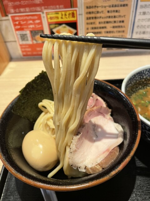 鶏白湯ベースのスープに魚介の旨味が混ぜ合わさり、高濃度に仕上げられた濃厚なつけ汁は、ストレート太麺によく絡む。まさに絶品だ。
