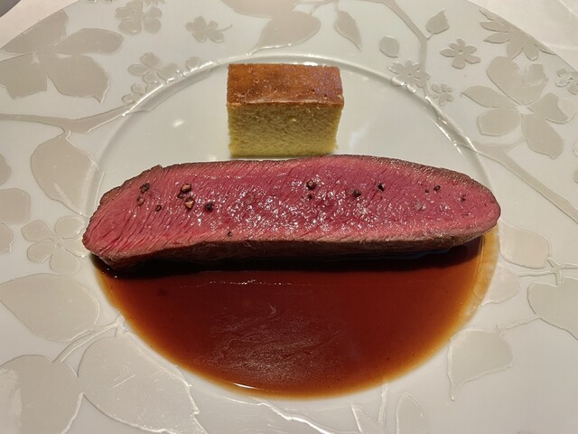 話は戻りますが、火入れも完璧。ソースは赤ワインと胡椒ですが、まさにこの肉にこのソースありという感じ。