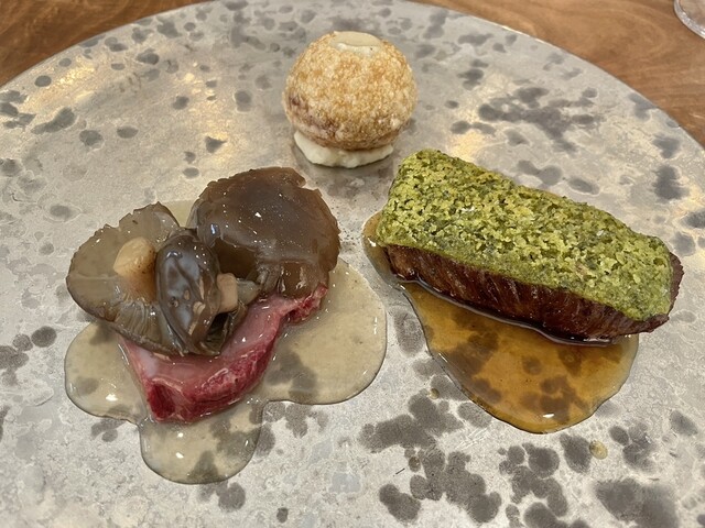 付け合わせのコロッケのようなものは里芋、トリュフ、チーズを合わせたコロッケで、これも面白い組み合わせ。
