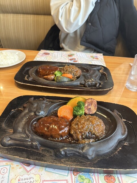 おにぎりハンバーグは安定の美味しさでした。いつもはオニオンソース一択でしたが、一緒に行った人がデミグラスソースを注文していたため、お店の方のご厚意で半々にかけていただきました。