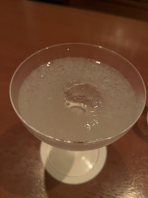 美しい一段振りから注がれた細かな氷片がたゆたうギムレットに、小さな氷をひとつ浮かべて提供される。キリッとしたライムの酸味が効いていて、とんかつの脂を爽やかに洗い流してくれる。おそらく少しライムの酸味を強めに作ってくれたのだろう。結構ドライで、清涼感が心地よい。ソルクバーノも美味しいようだ。