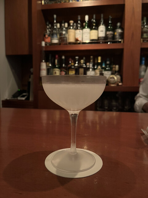 マスターはとても物腰柔らかい方で、丁寧に対応いただいた。とんかつを食べて満腹なのでさっぱりしたカクテルで口直しをしたいこと、私はショートカクテルを好むが、相方は弱いのでアルコール薄めのものがありがたいと告げると、私にはギムレット、相方にはソルクバーノを提案されたので、お願いする。