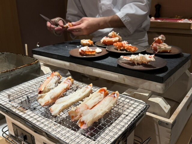 銀座のかにじぇぬで、友達の家族と食卓を囲む。主役は息子さん念願のタラバかにコース。脚は太く、身は瑞々しく、噛むほどに甘みが広がる。焼きも蒸しも王道を外さず、余計な演出はない。その分、素材の力がまっすぐ伝わる。少年の笑顔が何よりのご馳走。記憶に刻まれる、晴れの日の蟹だった。