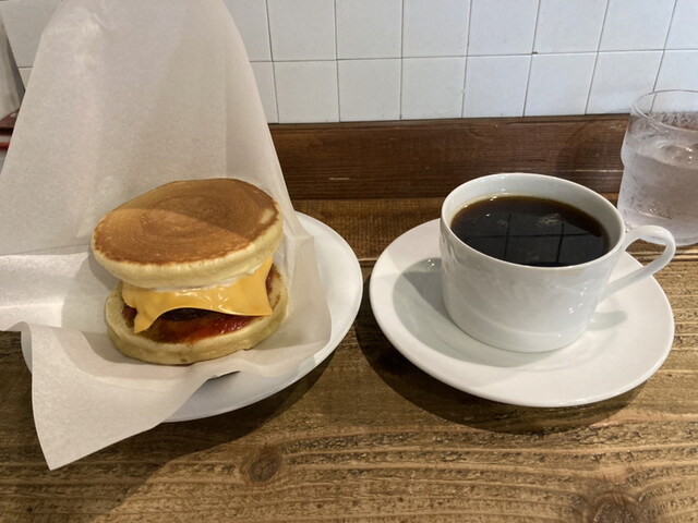 ホットケーキタワーが有名なお店。近くで用事がある毎に開いてるかチェックして閉まっていて…が続きましたが、本日、無事に入店。雨のせいか貸切状態。凄く悩みましたが、ホットケーキは次回に回して、お食事系サンドからチーズバークサンドを選択。甘味少なめの生地にチーズの塩味がマッチして満足。ペロッといただきましたがお腹いっぱい。セットのブレンドコーヒーは香りも味も良くこちらも大満足。路地裏なのでホッと一息つけるとても落ち着くお店。ご馳走様でした。