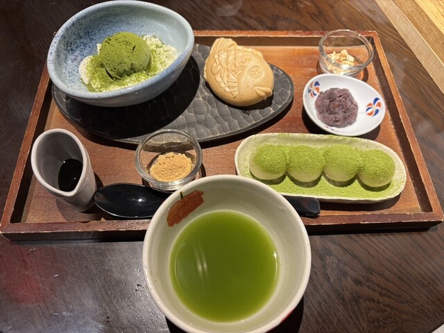もちもちの白玉、パリパリ最中、抹茶アイス添えのババロア?どれも美味!
