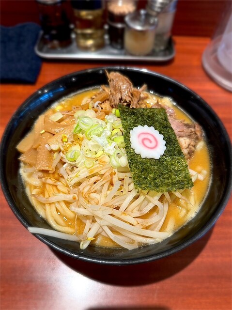 他、具:メンマ→柔らかい、優しい出汁が沁みてます。もやし→茹でもやしです、味噌ラーメンに合います♪ネギ→ざく切りで荒々しいタイプでこのラーメンとバランスがいいです。海苔→しっかり風味あり!なると→普通に美味しい♪