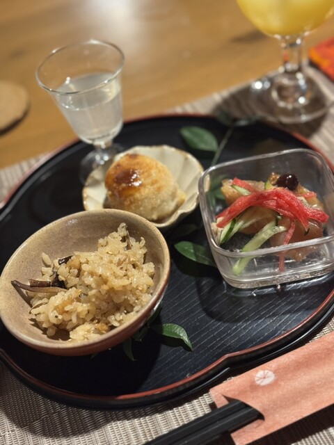 ふきのとうコロッケ そばの実リゾット ブリ りんご甘酒