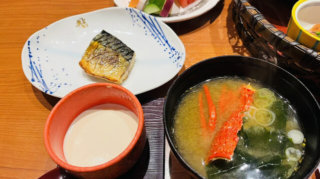 【朝食②】手作り豆腐、干物、味噌汁
