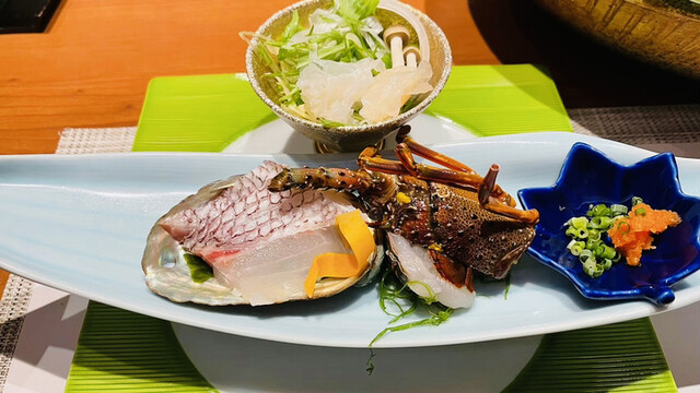 【刺身】栄螺、鮃、伊勢海老、季節の鮮魚
