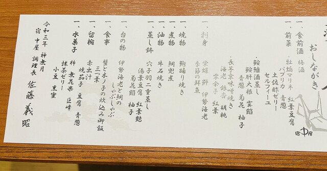 夕食おしながき