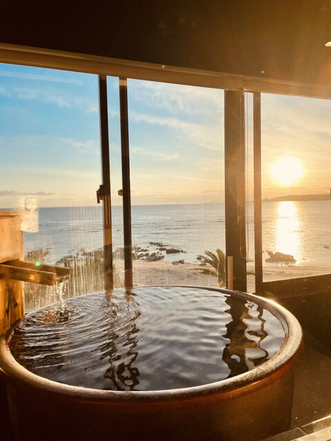 客室露天風呂からのサンセット