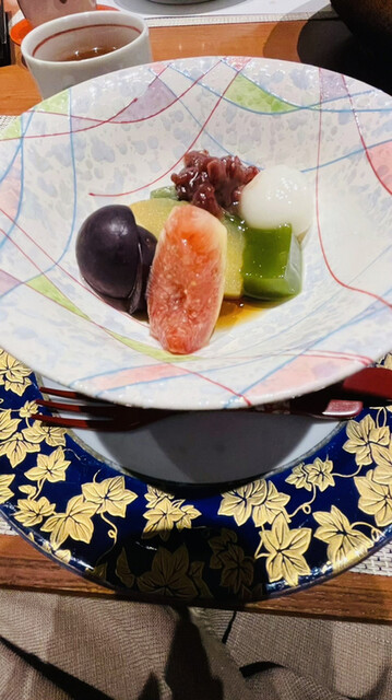 【水菓子】林檎のコンポート、無花菓、巨峰、抹茶ゼリー