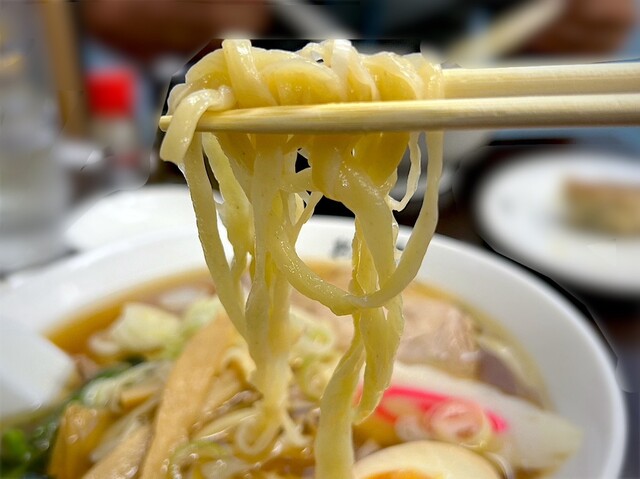 具材は程良い食感と肉感が楽しめる薄めのチャーシュー、太めのメンマ、ほうれん草、長ネギ、そしてなんとも懐かしい大きく薄いなると。