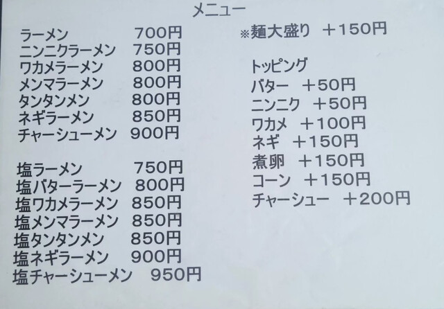 具材の違いはほうれん草が無い代わりに水菜が乗っていることと、チャーシューが1枚多い。