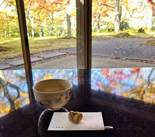 映り込みまで美しい!立礼席でいただく極上の一服@強羅
