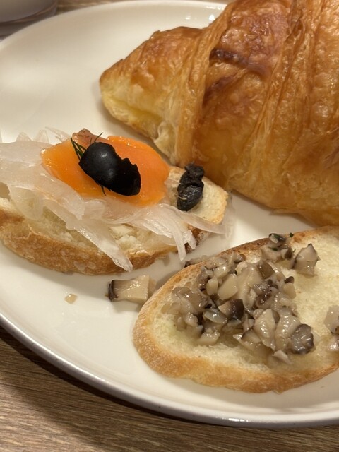 プルスケッタとクロワッサンは前回同様申し分なし。今回はオムレツにもオムライスにもできるサービスが!