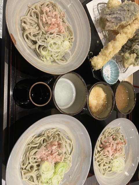 ・天ぷら付きおろしざんまい (3種蕎麦 細麺2 太麺1)
