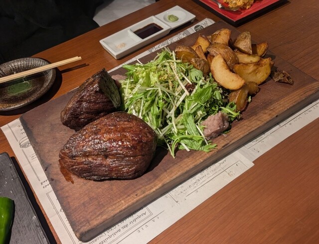 ハツ刺しは新鮮でコリコリとした食感がたまりません。10分以内で食べました。パリピは甘じょっぱいタレにつけてパリパリ食べました。お肉は神居牛は脂身少なめであっさり、イチボはサシが多めで赤身と脂身が楽しめるお肉でした。個人的には神居牛が好きです。あてについていたフライドポテトのじゃがいもがホクホクでこれも美味しかった。