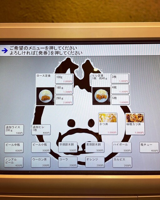 中に入るとすぐに券売機があります。ロースかヒレかどちらにしようかな。グラム数も悩みます。かつ丼や味噌カツ丼も悩ましい。一体どうすればいいの!!