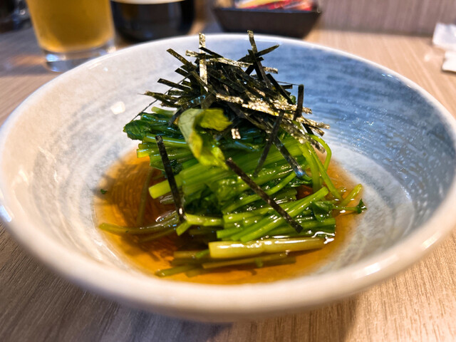 まずはビールとおひたし、やっこ。