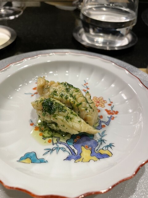 りんごのガリ、極薄にスライスされてガリになっているのにりんごの甘みと酸味が素晴らしい