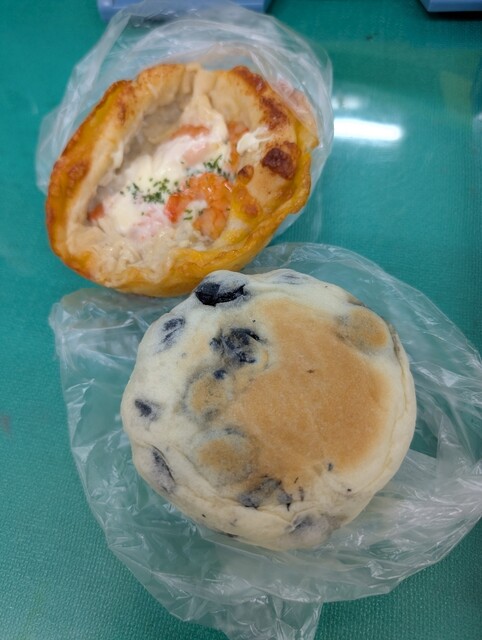 たっぷりエビグラタンと丹波黒豆パン もちもちでした