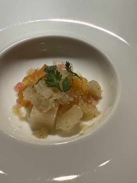 南イタリア料理 ぶりにみかんのソース、綺麗な優しいお野菜 香りで始まり、美味しさに驚きながらいただきました