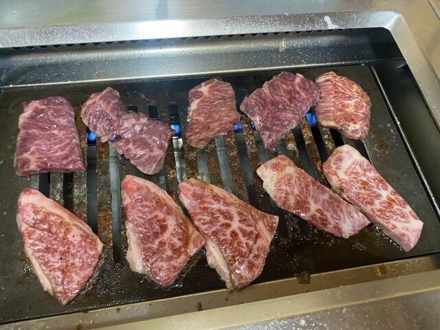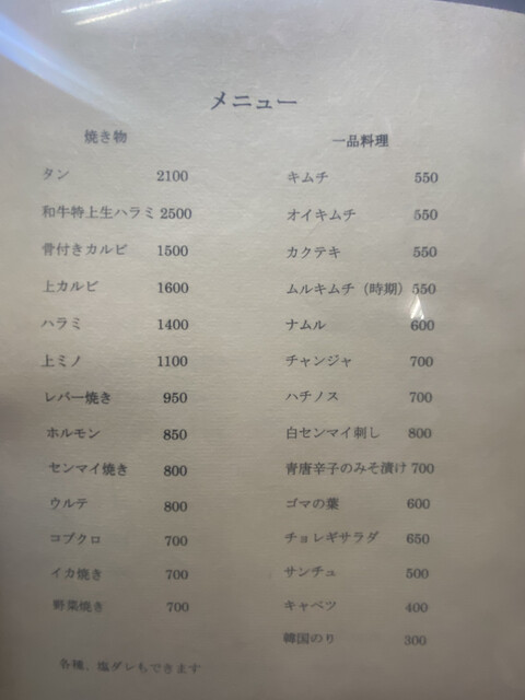 ぐびぐびグレーブフルーツサワー飲んでたら、酔いが回ってしまったけど、ミノ、カルビ、普通のハラミ(特上より赤身)、レバーなど、どんどん頼んで、たくさん食べた。