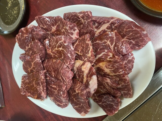 ウルテという部位、ホルモンの一つで、焼くと、軟骨の歯応えがコリコリパリパリあり、初めて食べる。美味しかった。