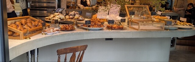 1番人気のクロワッサン、水分量多くふわふわの食パン、1番右の列は甘い物。