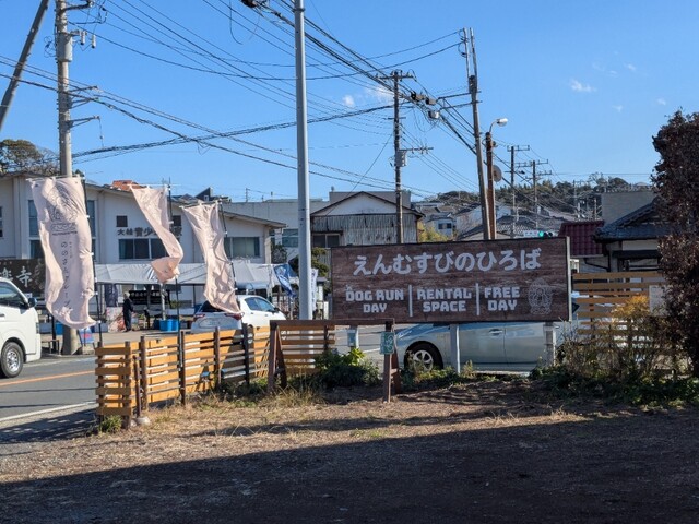 開けたところにキッチンカーと奥にドッグラン。