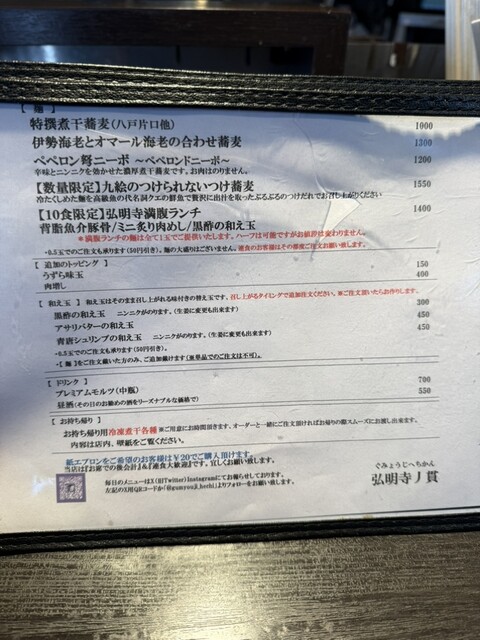 地下鉄弘明寺駅から1分ほどにある弘明寺丿貫に伺いました。丿貫といえば煮干を大量に使用したセメント系の始祖。その弘明寺店です。店に漂う香りからしてニボニボしい。王道の特撰煮干蕎麦(八戸片口他)をオーダー...