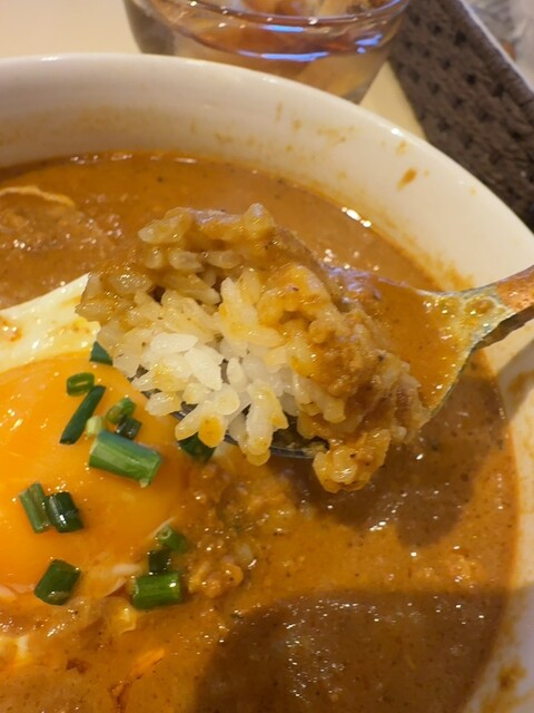大ボリュームのアツアツ旨辛カレー!無限ルゥにライスが潜むエッグキーマカレーセット