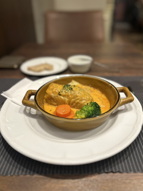 メインのゴルブッツィは、キャベツの甘みと具材の旨みがトマトクリームソースとよく合っていて、素朴だけど満足感あり。
