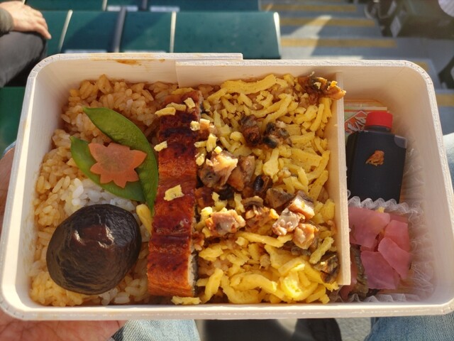 少し異様に盛り上る中、願掛けも兼ねて「球児弁当」を購入、生ビールを飲みながら試合開始に備えますw御飯系が半分を閉め結構ボリューム有、甘い卵焼きもまあ有りか?煮物はおじさんにはありがい(アテニピッタリw)なんで甘納豆?と思いながら完食です(*´∀`)♪