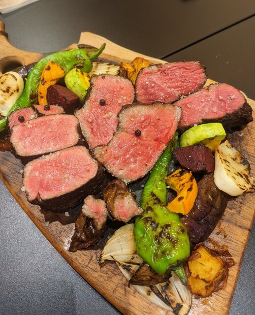 経産牛(北海道)熟成リブロース・近江牛イチボとランプ・炭火焼野菜