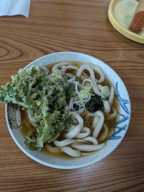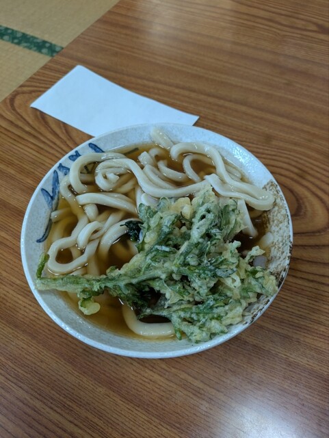 いつもと同じ「てんぷらうどん」大盛、天ぷらは春菊で。
