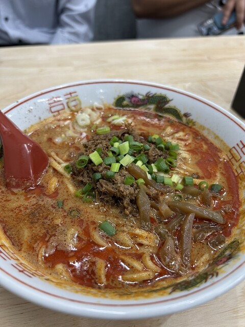 同僚はつけ麺中盛りを選択。ほどなく坦々麺が着丼。結構濃厚な味で見た目赤く激辛のように見えますが、そこまで辛くなく辛旨です˙˚ʚ(꒪ˊ꒳ˋ꒪)ɞ˚˙