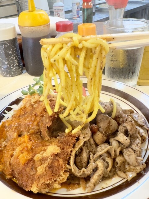 大盛りは、焼肉、フライ、ご飯それぞれ100円で