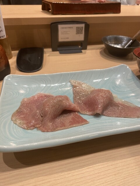 合間にいただいた茶碗蒸しは、ふんわり滑らかな食感で味も上品。箸休めとしてもちょうど良いバランスです。締めに選んだ牛タン寿司は少し塩味が強めに感じましたが、牛タン特有の旨みとシャリの相性が良く、個性的な一皿として楽しめました。