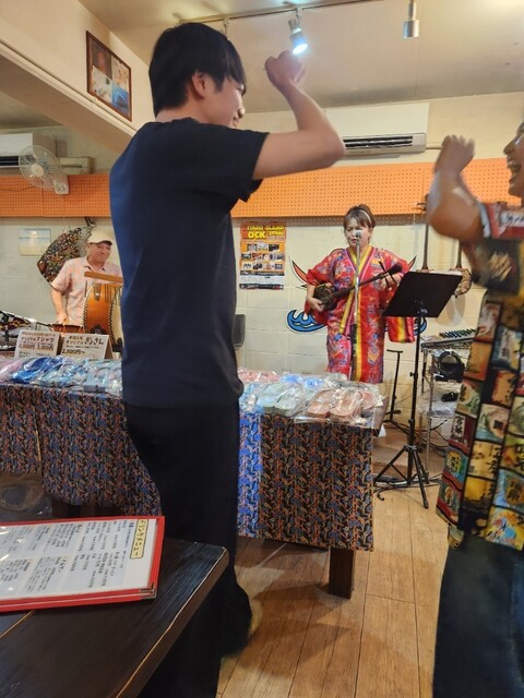 19時に予約をいれてから、19時半から三線LIVEがあるのだと気付きました。家の子供達(成人)結構騒がしいの嫌がるからなと思ったら、以外や以外、歌も上手いしお客さんも捲き込んでの楽しいでした。