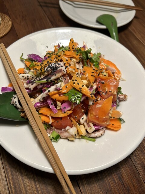 職場の同僚と参りました。なかなか予約が取れず、もちろん本日も満席。3人から6名のグループで来られていました。おふたりでテキパキ切り盛りされています。エスニック料理ですが、辛いものが苦手な方も大丈夫。どれも、他ではない素材の組み合わせです。春巻きは毎回オーダーします。今回はクリーム、ミルク味の好きな人がチョイスしたので、パスタ、スープの両方とも白。どちらも美味しく頂きました。