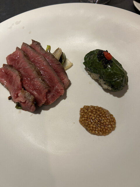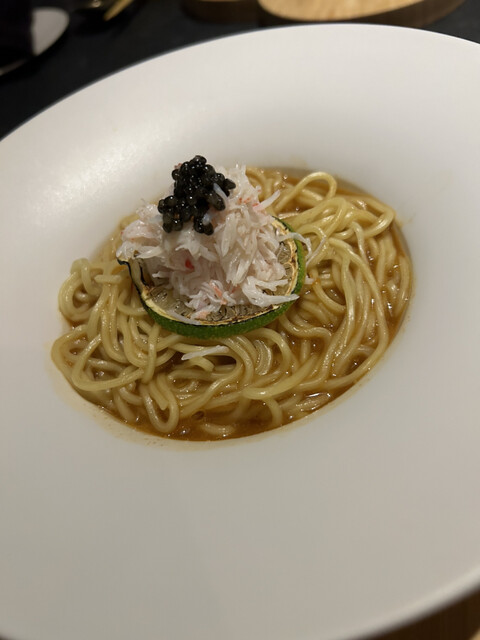 入店する前から期待感があります。サインなし。知らないと入れない、でもどこかあたたかい構えです。お料理はコース一択。一品、一品、説明してくださいます。ヤッカはジャガイモとトリフのお菓子のような、豆腐のスプームと言っていいのかな、蟹と蟹みそのキンパ、海老のカンジャンケジャンはキャビアのせて、鰤のユッケ、コンソメのような鱈のスープ、鮑と米入り手羽先参鶏湯、お肉はクリと言う部位、それとエゴマのおにぎり、コチジャン入りメリケンスープ麺、麺の量は増減可。抹茶アイスとあんこ、チーズ、餅の甘味。ところどころ違っているかも。どの一皿も韓国料理の概念を覆すものですが、斬新さだけではなく優しい香りと味わいです。シェフさんもスタッフさんもスタイリッシュで優しい方々です。ご馳走様でした。